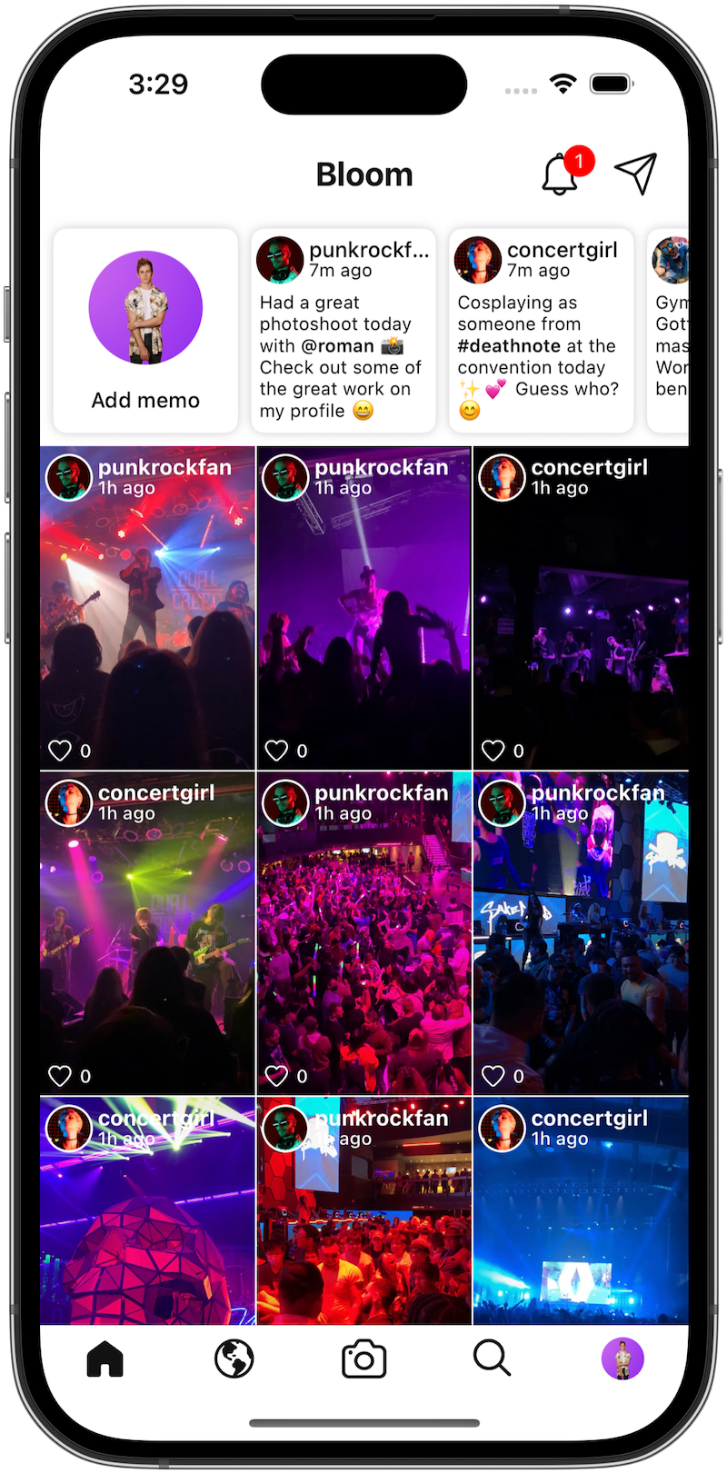 Take a photo or video and upload it to Bloom for your friends and followers to see.